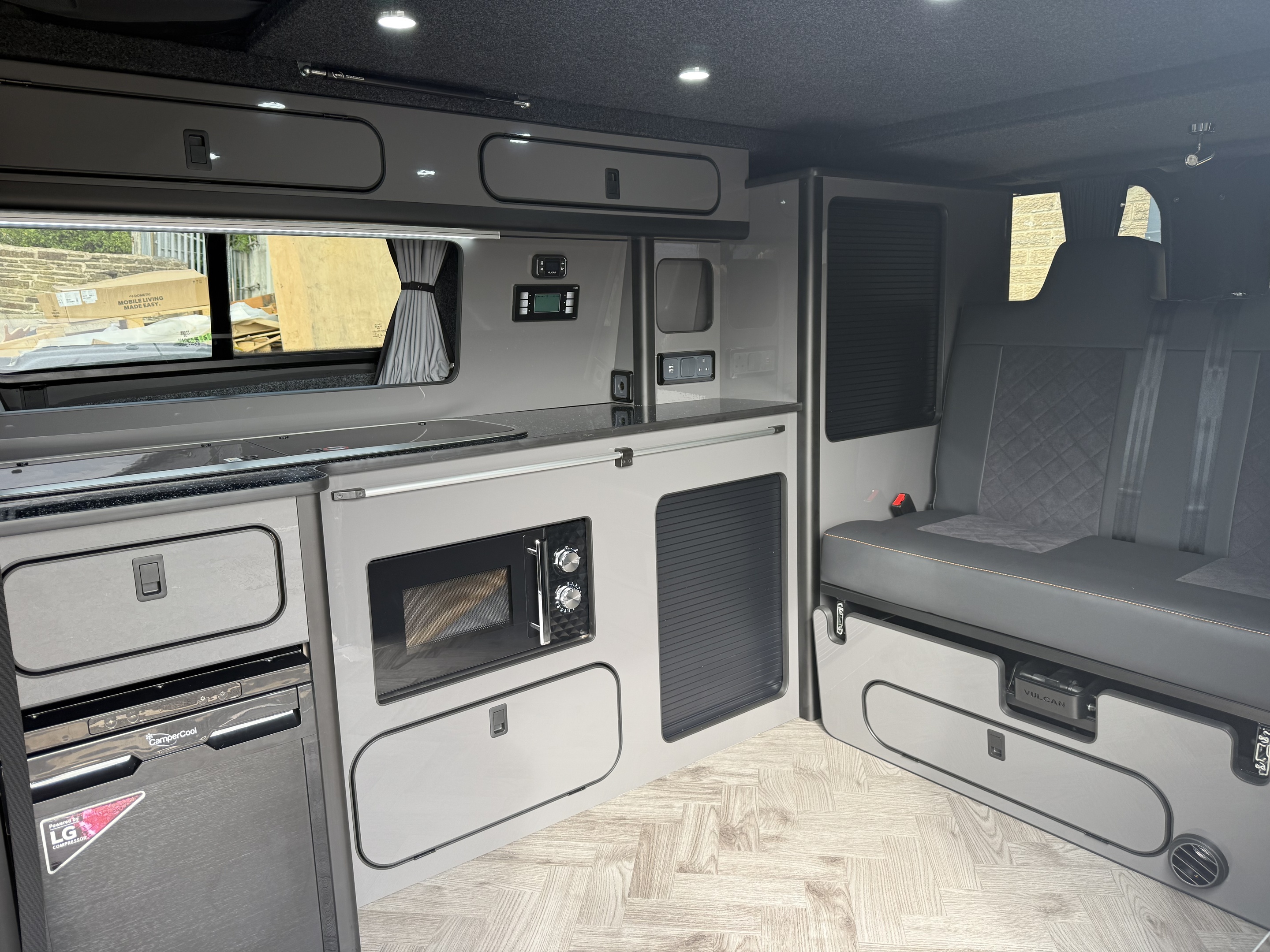 We customise every campervan to match your unique style and preferences. You choose the colours for the walls, seating, flooring, kitchen, and worktops - it's your space, your way.